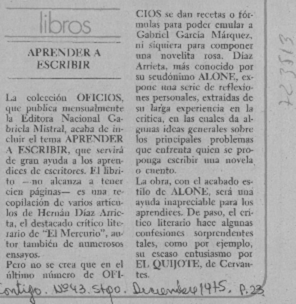 Autores chilenos - Aprender a escribir - Alone