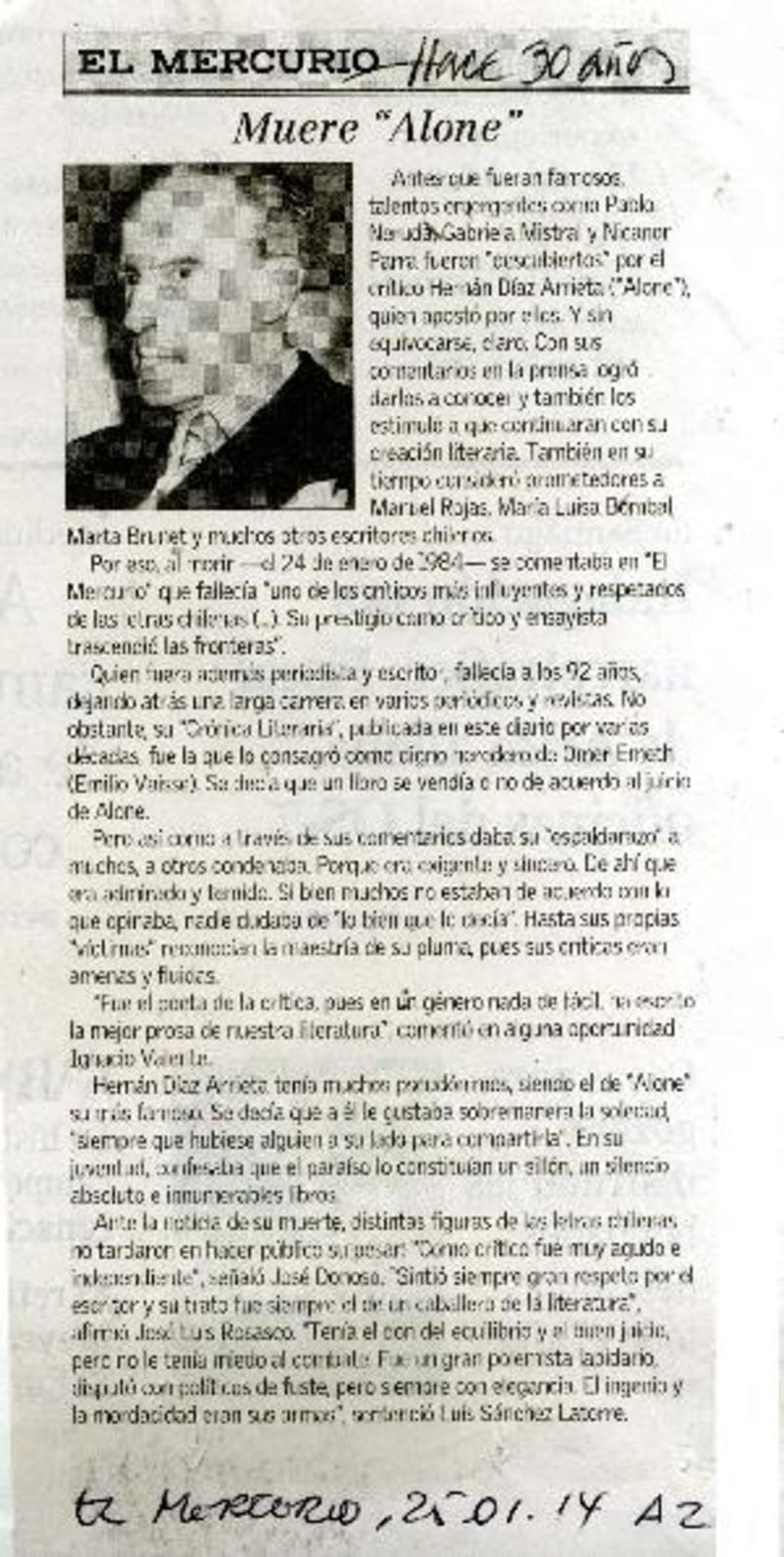Se llamaba Hernán Díaz Arrieta pero se le conoció como "Alone" [artículo] G. G.
