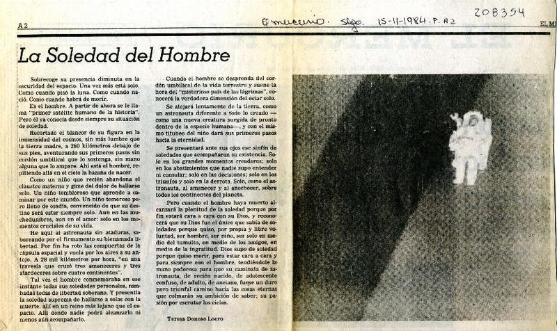 La soledad del hombre [artículo] Teresa Donoso Loero.