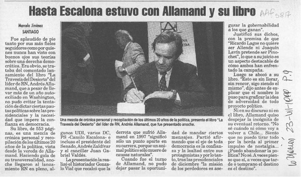 Hasta Escalona estuvo con Allamand y su libro [artículo] Marcela Jiménez.