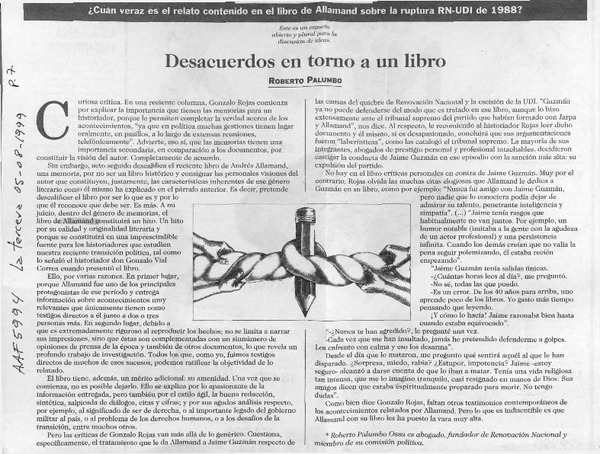 Desacuerdos en torno a un libro [artículo] Roberto Palumbo.