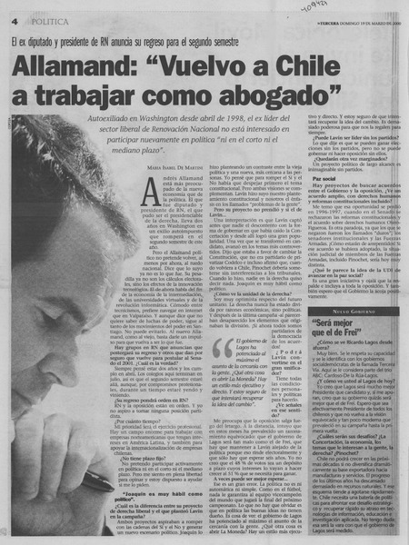 Allamand, "Vuelvo a Chile a trabajar como abogado" [artículo] María Isabel de Martini