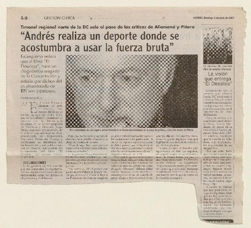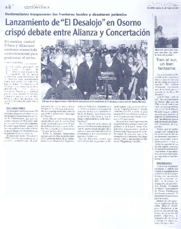 Lanzamiento de "El Desalojo" en Osorno crispó debate entre Alianza y Concertación [artículo]Daniela Asenjo Keim.