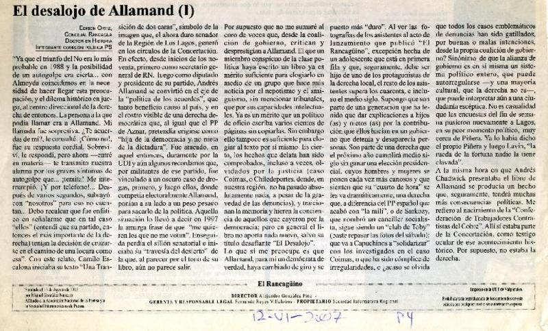 El desalojo de Allamand (1) [artículo]Edison Ortiz.