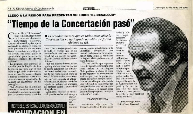 "Tiempo de la Concetación pasó" [artículo]Rodrigo Salas.