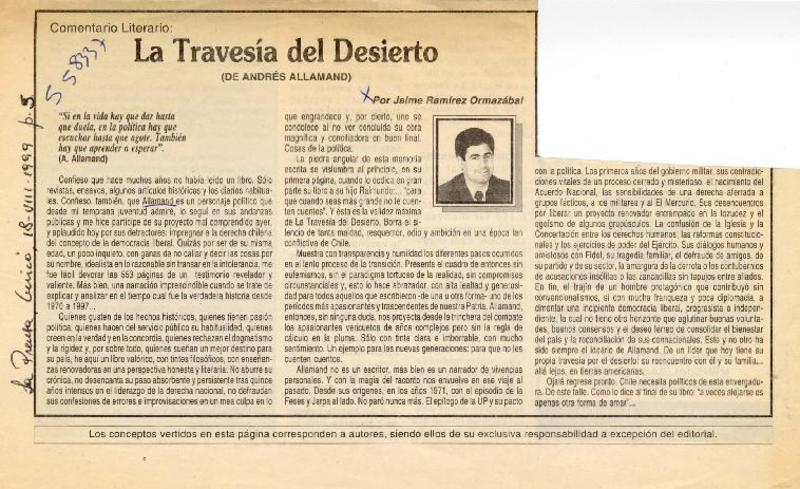 Autores chilenos - Allamand, Andrés - La Travesía del desierto