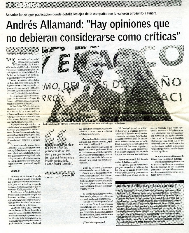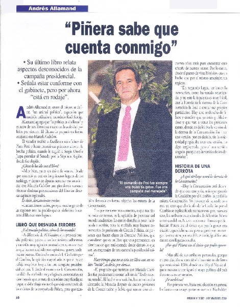 Andrés Allamand: "Hay opiniones que no debieran considerarse como críticas" (entrevista) [artículo] Daniela Asenjo Keim.