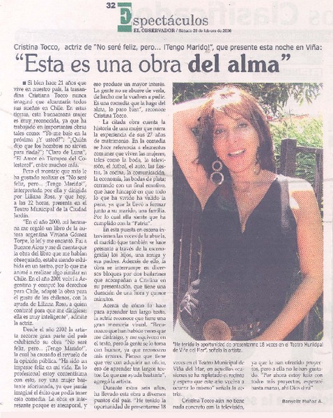 Cristina Tocco mezclará teatro y tango en su nuevo espectáculo [artículo] Verónica Marinao