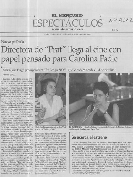 Directora de "Prat" llega al cine con papel pensado para Carolina Fadic [artículo] Fernando Zavala
