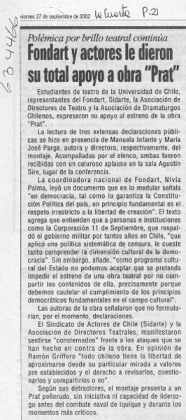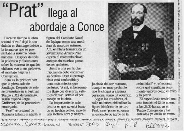 Fondart y teatristas insisten en polémica obra "Prat" [artículo] Leopoldo Pulgar