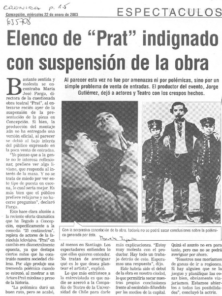 Elenco de "Prat" indignado con suspensión de la obra. [artículo]