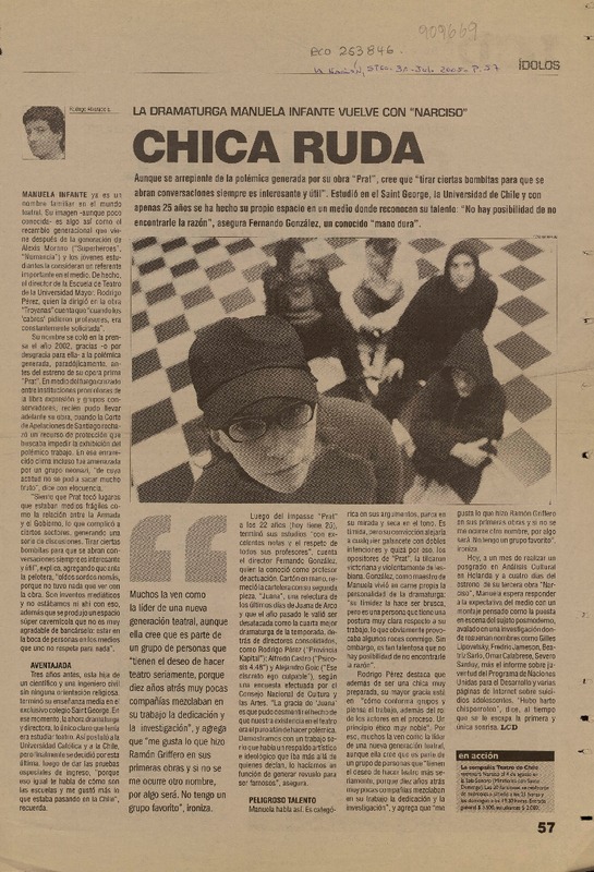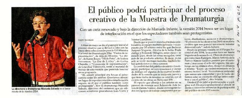Autoras chilenas - Entrevistas - Infante, Manuela - Multicancha - Compañía Teatro de Chile (Santiago, Chile)
