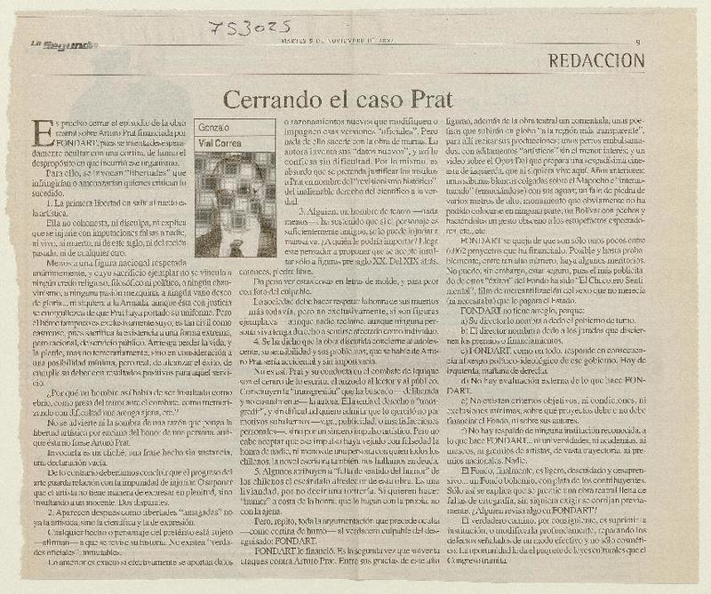 Cerrrando el caso Prat [artículo] Gonzalo Vial Correa.