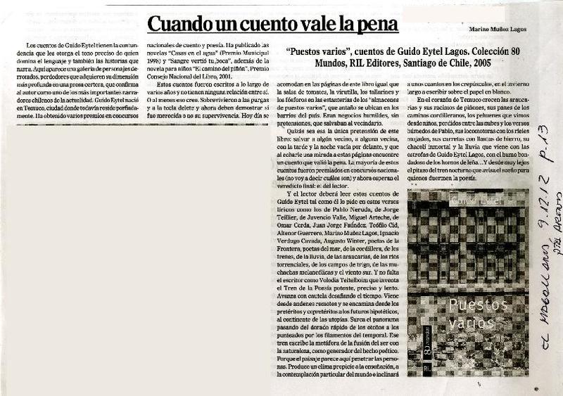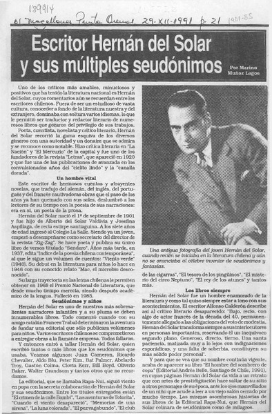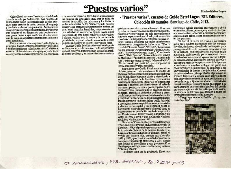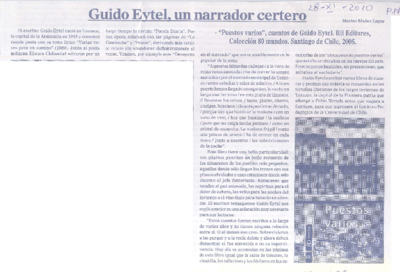 Un escritor de géneros variados [artículo] Marino Muñoz Lagos.
