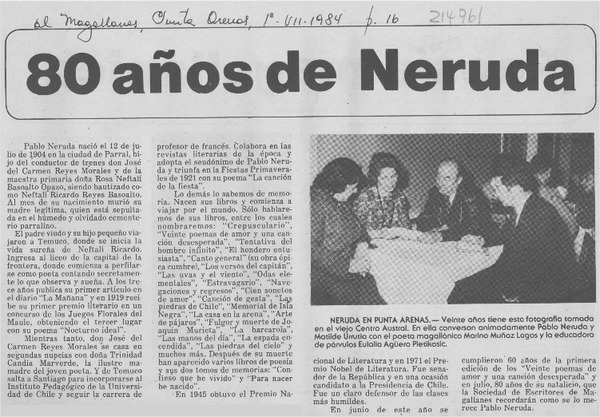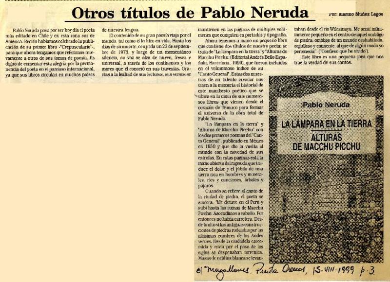 Algo más sobre Neruda [artículo] Marino Muñoz Lagos.