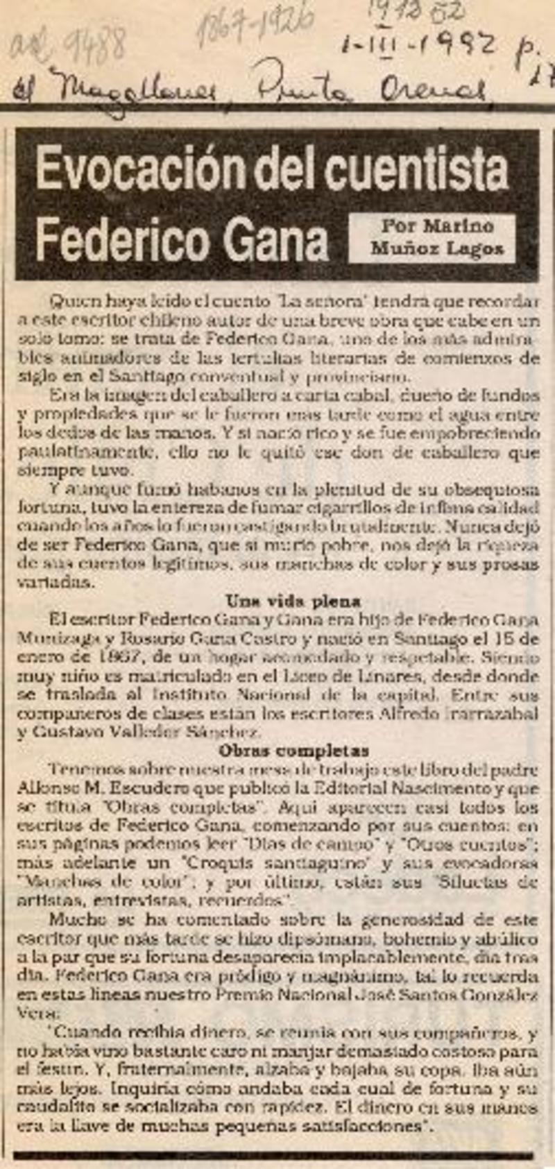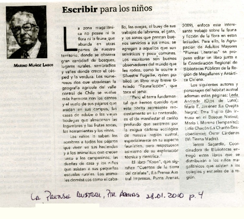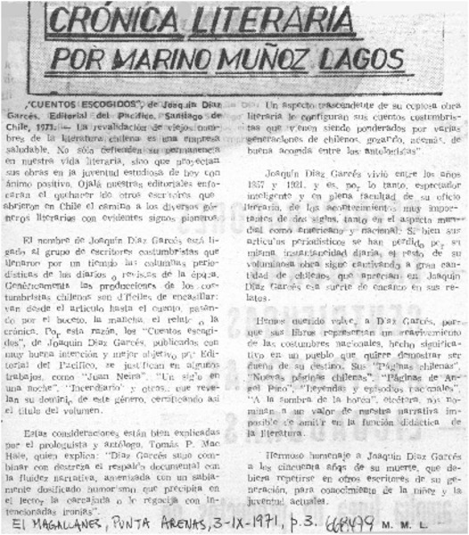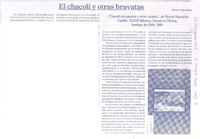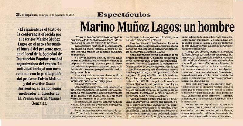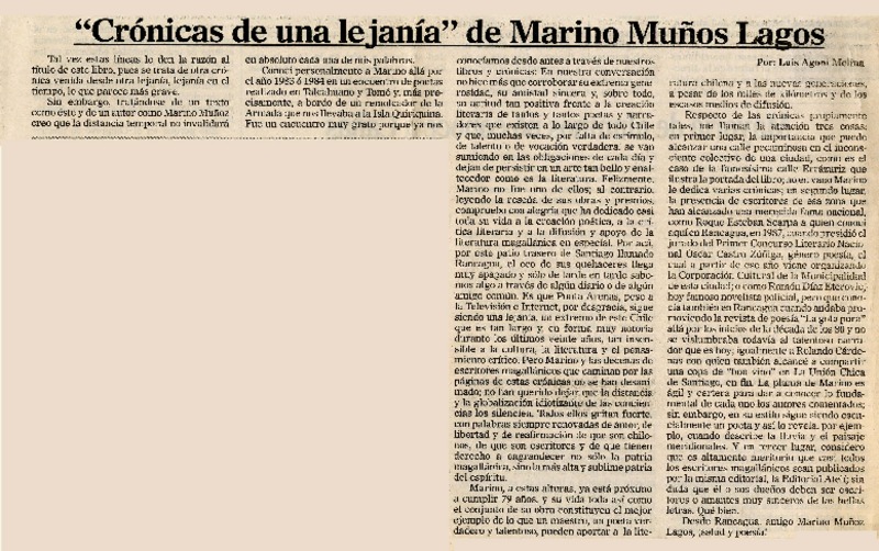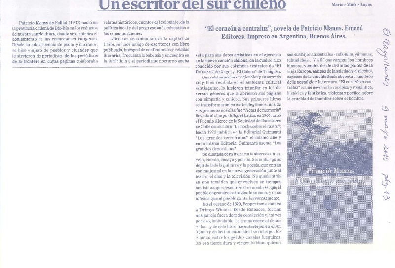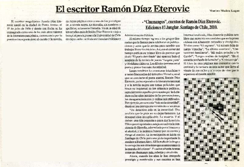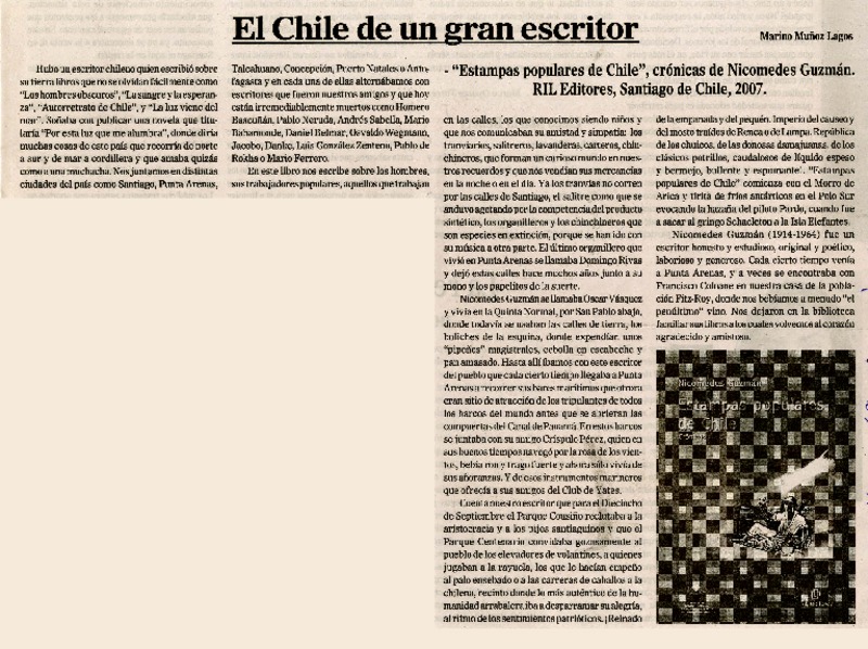 Un escritor del sur chileno [artículo] Marino Muñoz Lagos.