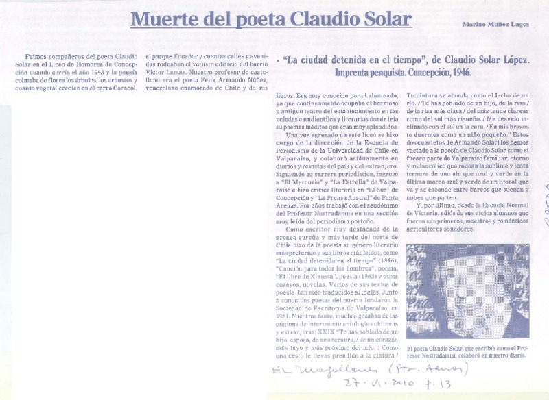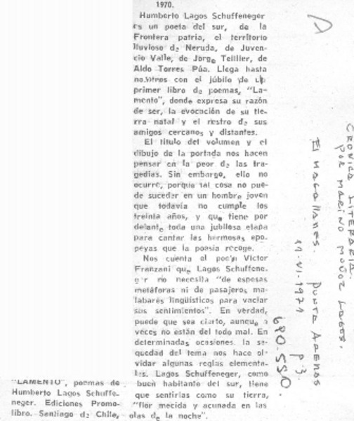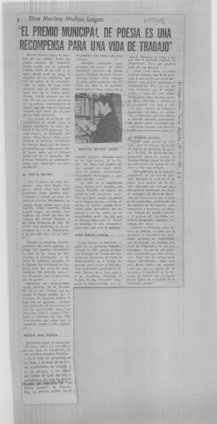 Un poeta viviente y singular [artículo] Marino Muñoz Lagos.