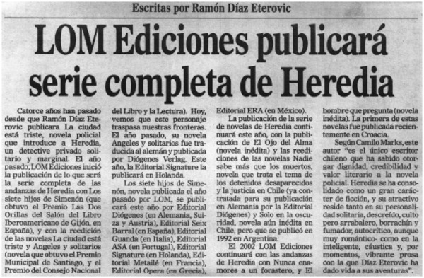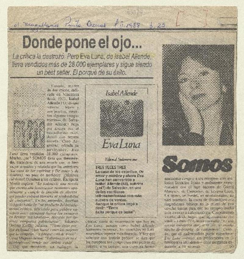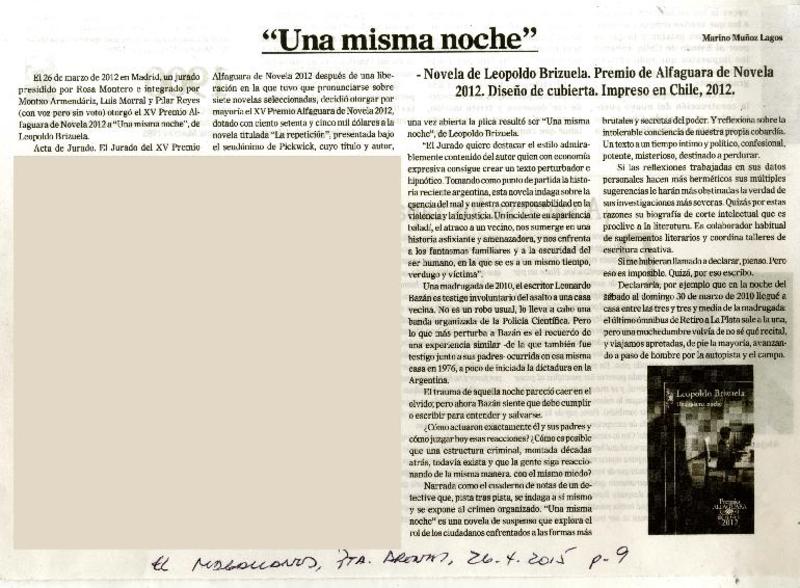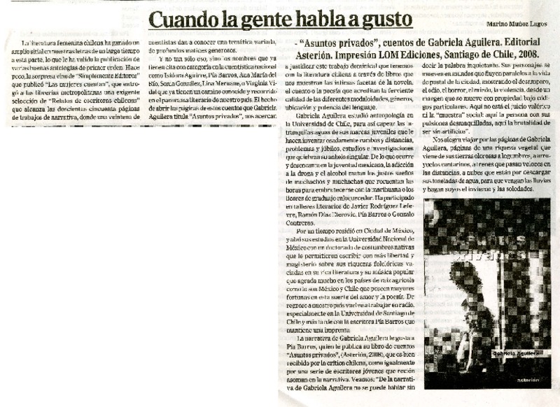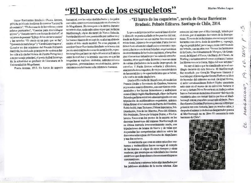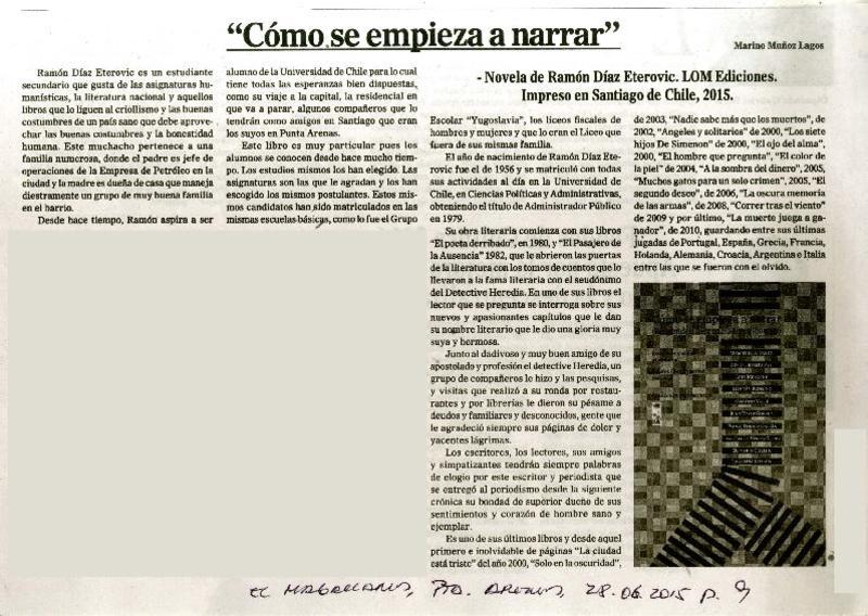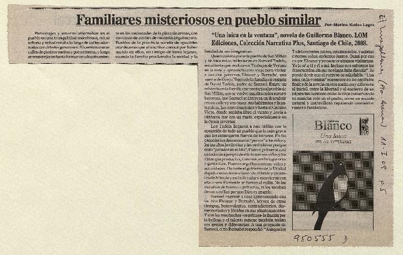 Una novela expectante [artículo] Marino Muñoz Lagos.