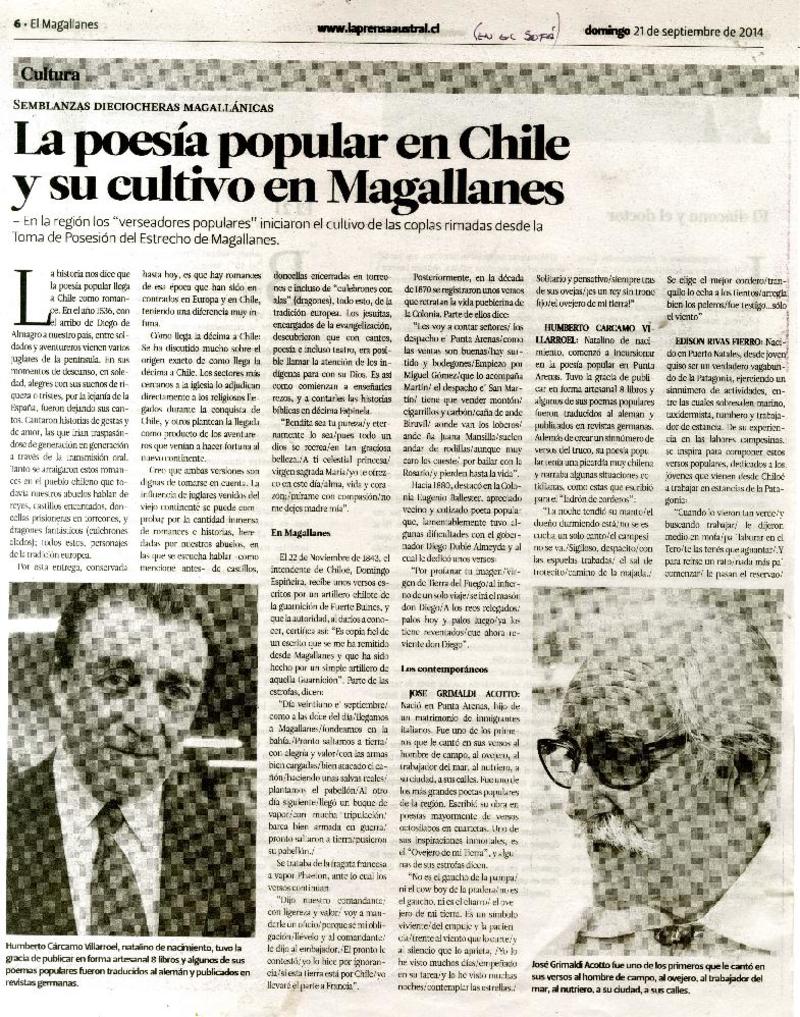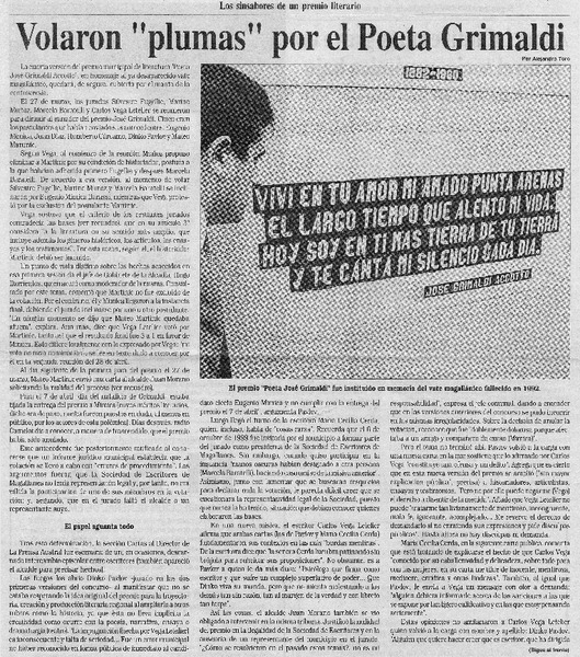 Volaron "plumas" por el poeta Grimaldi [artículo] Alejandro Toro.