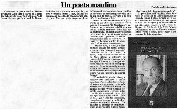 Un poeta maulino [artículo] Marino Muñoz Lagos.