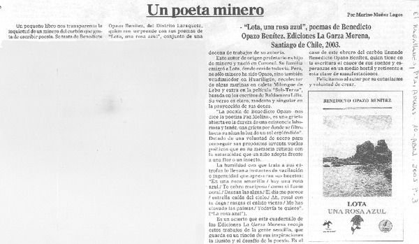 Un poeta minero [artículo] Marino Muñoz Lagos