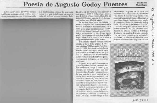 Un poeta del sur chileno [artículo] Marino Muñoz Lagos.