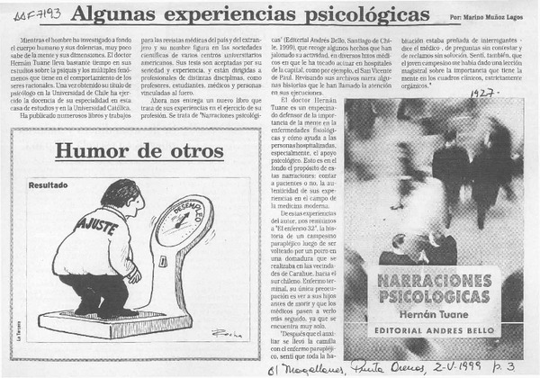Algunas experiencias psicológicas [artículo] Marino Muñoz Lagos.