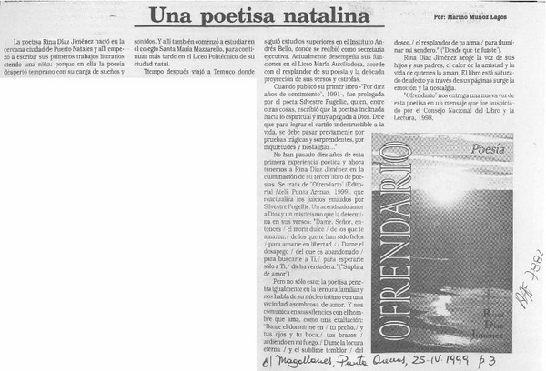 Una poetisa natalina [artículo] Marino Muñoz Lagos.