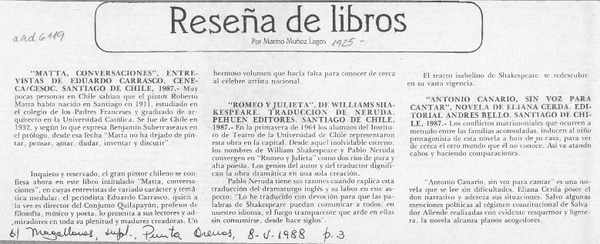 Un libro doloroso y dramático [artículo] Marino Muñoz Lagos.