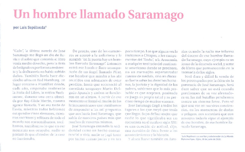Un hombre llamado Saramago [artículo] Luis Sepúlveda.