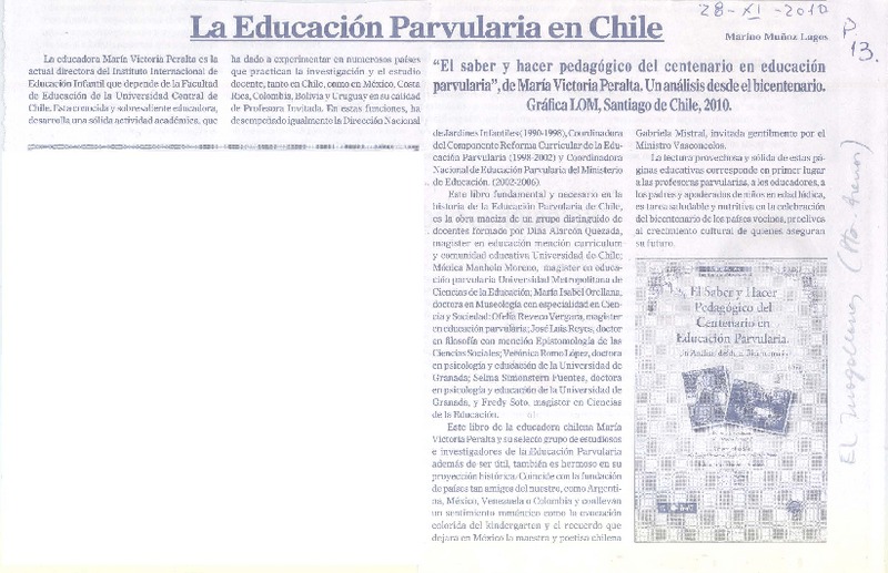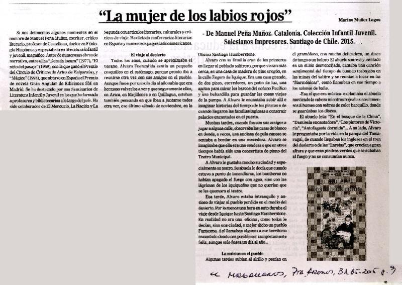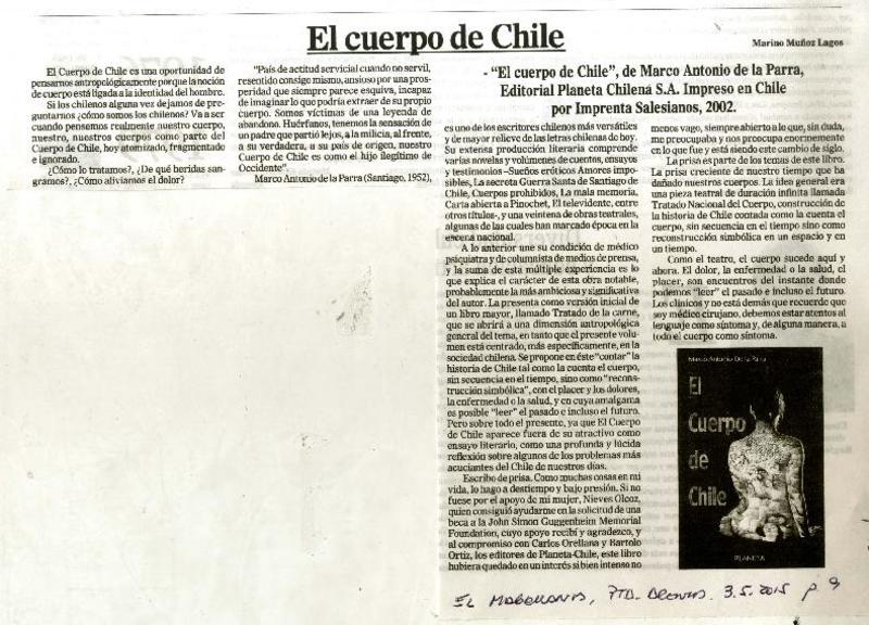 Una novela original y vigente [artículo] Marino Muñoz Lagos.