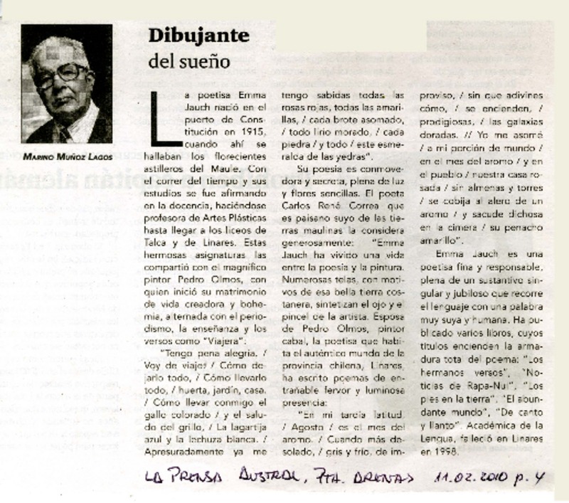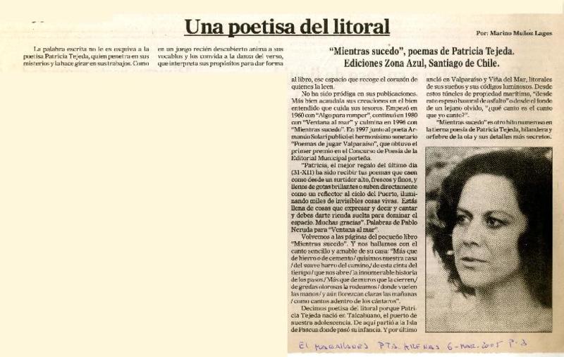 Una poetisa del litoral [artículo] Marino Muñoz Lagos.