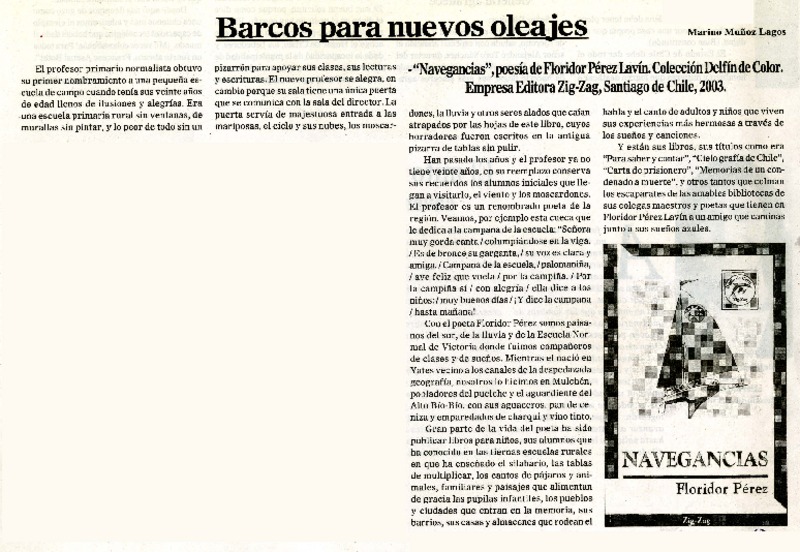 Barcos para nuevos oleajes [artículo] Marino Muñoz Lagos.