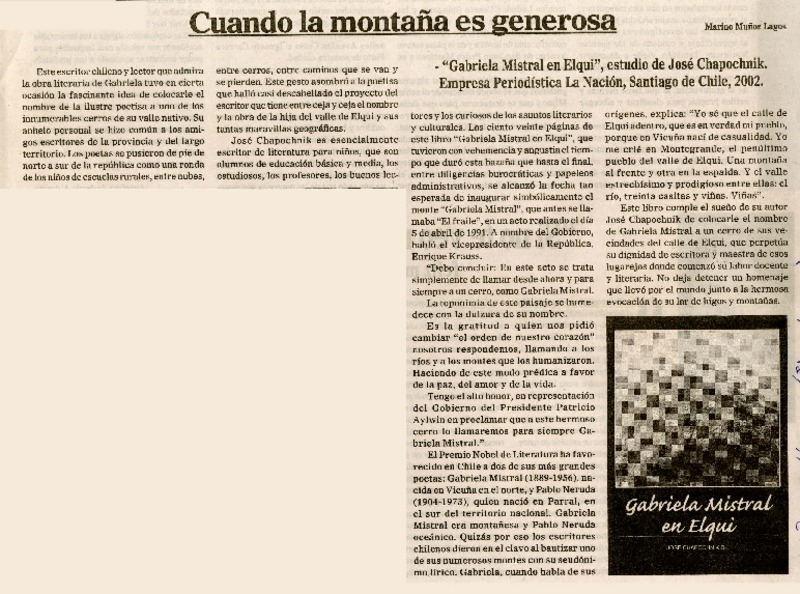 Un cerro para Gabriela [artículo] Marino Muñoz Lagos.