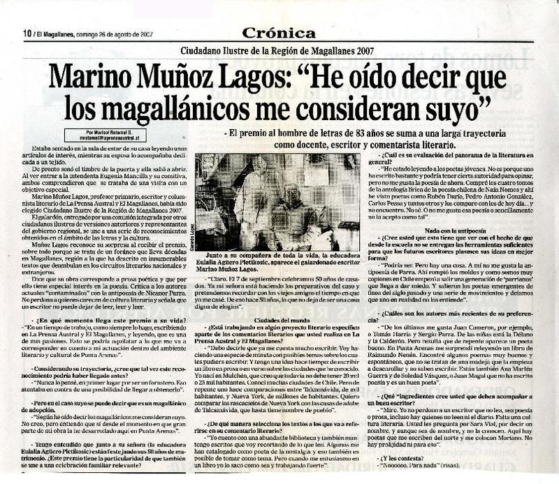 Un poeta y sus personajes [artículo] Marino Muñoz Lagos.