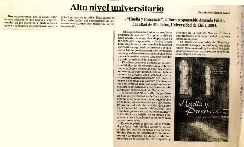 Alto nivel universitario [artículo] Marino Muñoz Lagos.