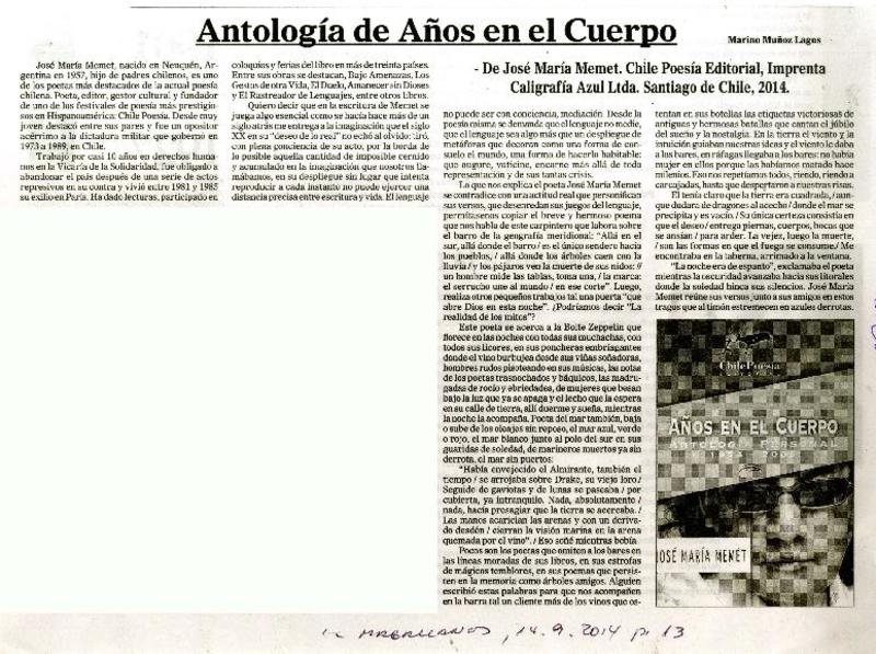 Antología de Años en el Cuerpo [artículo] Marino Muñoz Lagos
