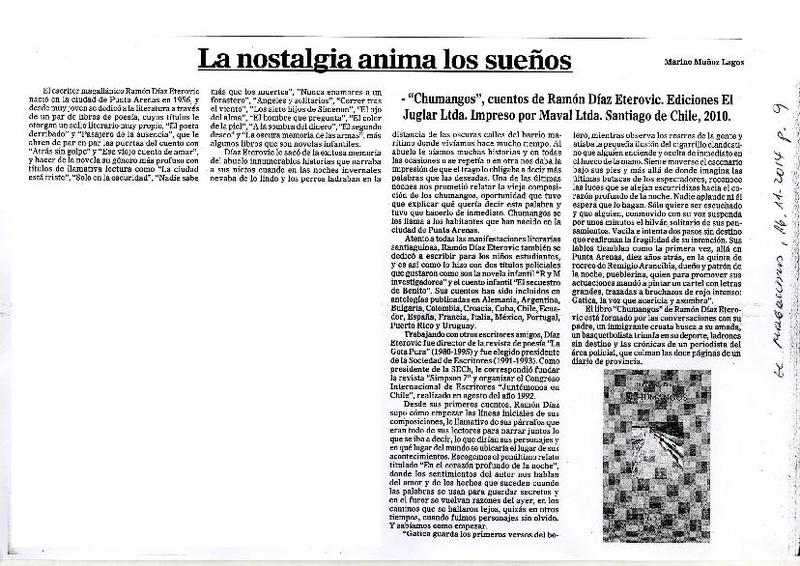 Un poeta de la nostalgia [artículo] Marino Muñoz Lagos.