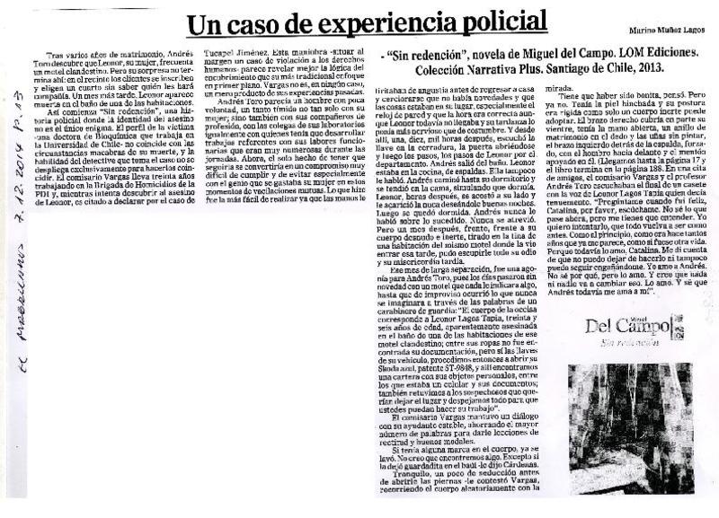 Un caso de experiencia policial [artículo] Marino Muñoz Lagos