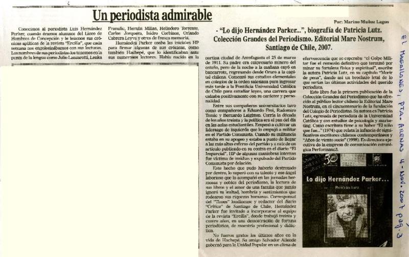 Un periodista admirable [artículo] Marino Muñoz Lagos.