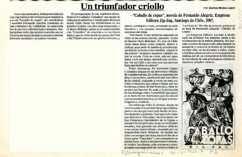 Un triunfador criollo [artículo] Mauricio Muñoz Lagos.