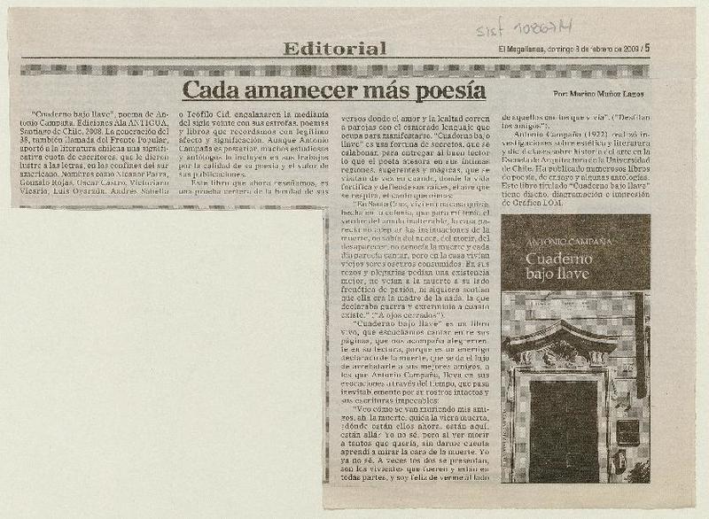 Cada amanecer más poesía [artículo] Marino Muñoz Lagos.