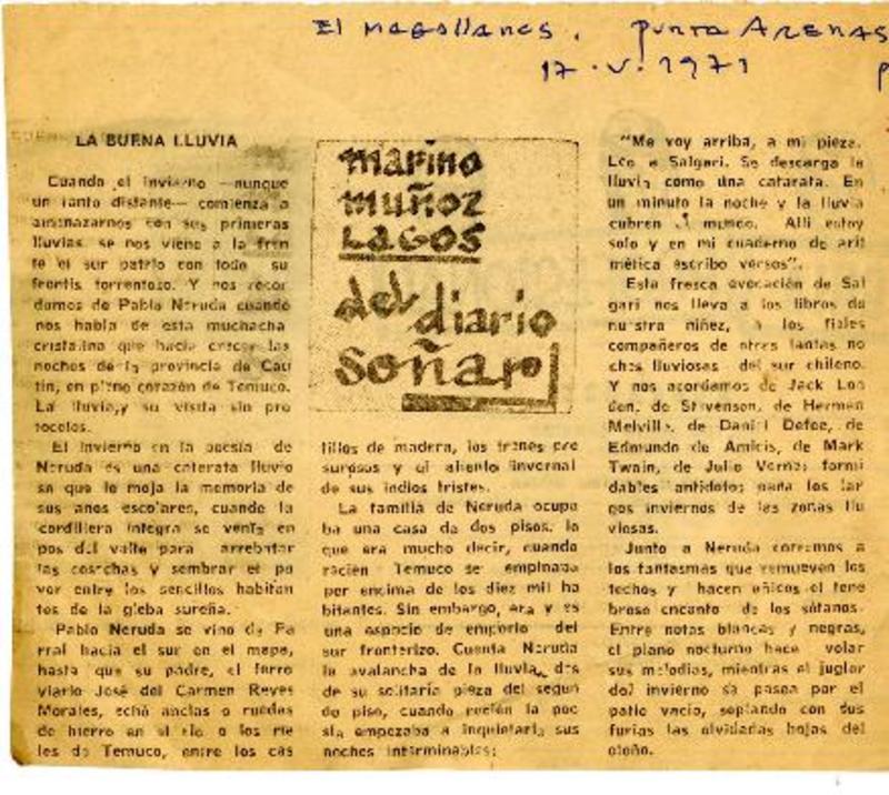 Antofagasta, lluvia y poesía [artículo] Marino Muñoz Lagos.