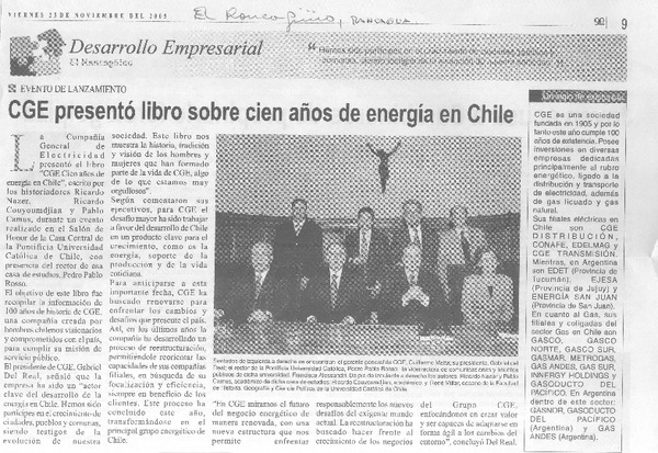 CGE presentó libro sobre cien años de energía en Chile [artículo].