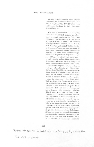 Couyoumdjian, Juan Ricardo - Autores chilenos - Camus, Pablo - CGE. Cien años de energía en Chile - Nazer, Ricardo