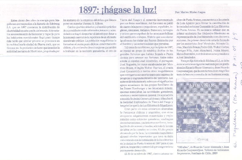 1897: ¡hágase la luz! [artículo] Marino Muñoz Lagos.