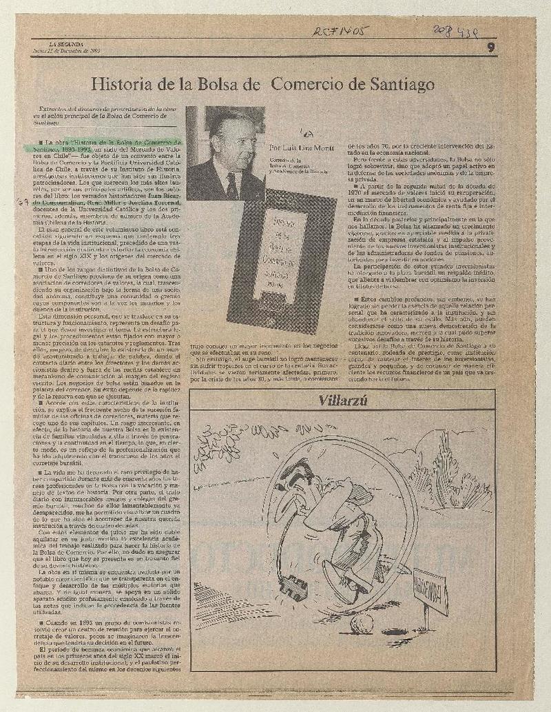 Historia de la Bolsa de Comercio de Santiago [artículo] Luis Lira Montt.