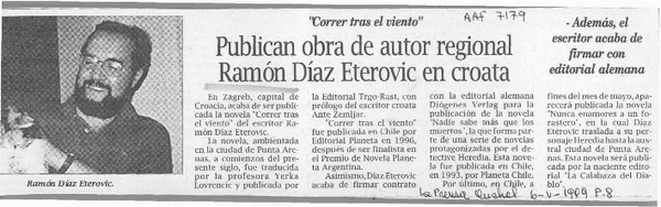 Publican obra de autor regional Ramón Díaz Eterovic en croata [artículo].