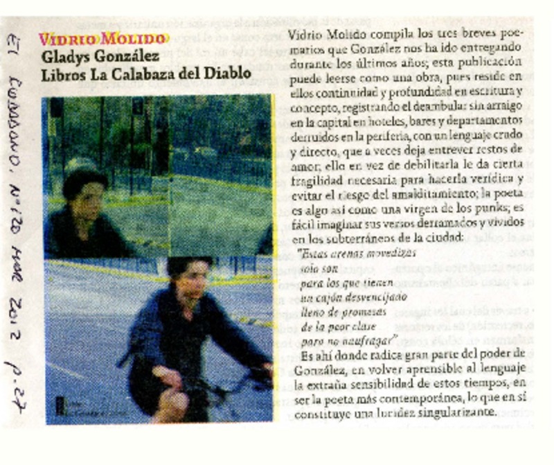 Autores chilenos - Entrevistas - González, Gladys - Vidrio Molido