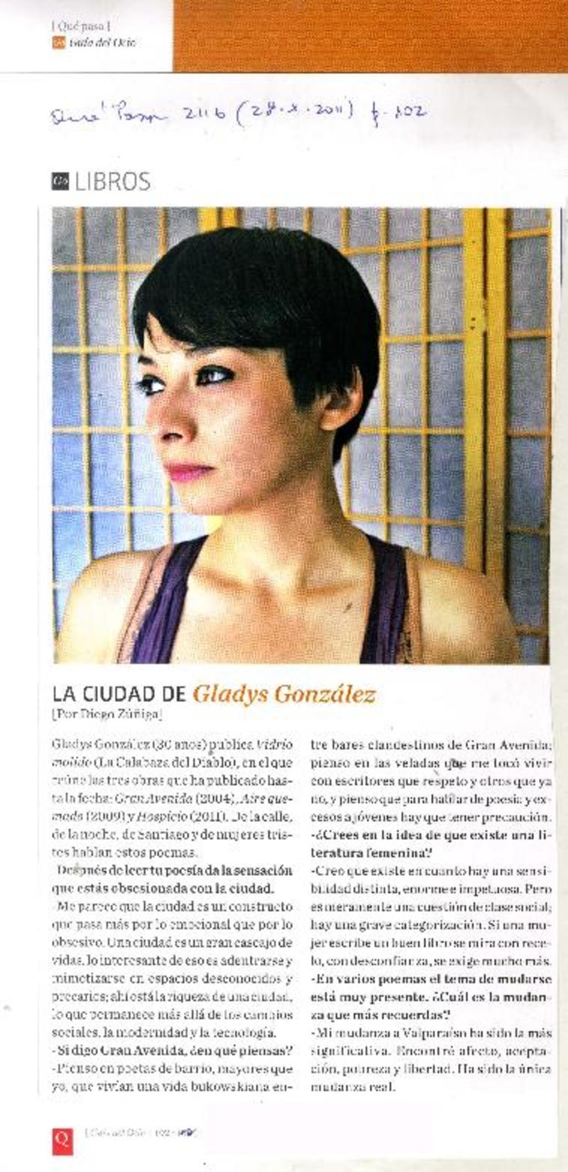 La ciudad de Gladys González [entrevista] [artículo] Diego Zúñiga.